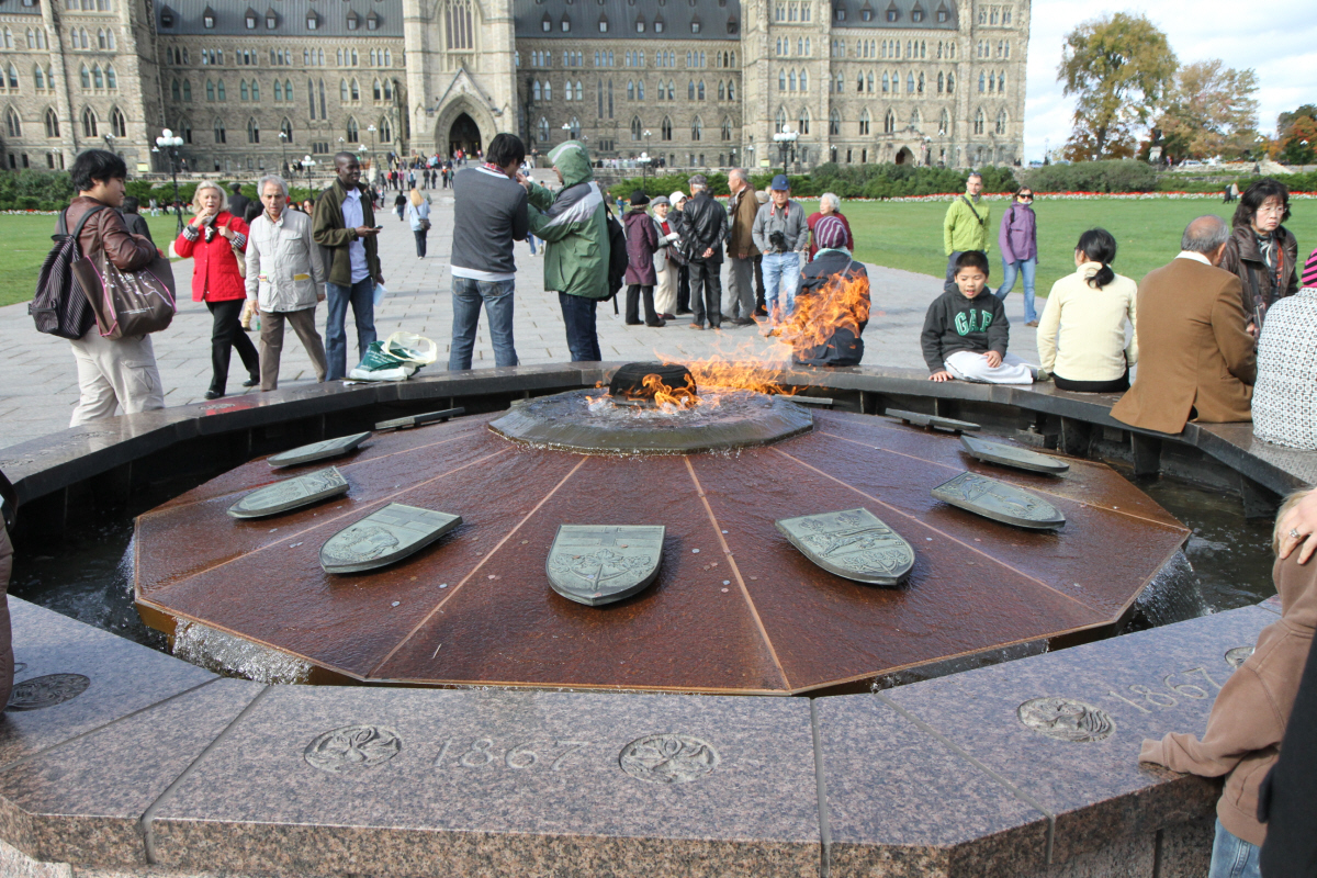 Fountain-&-flame landmark dedicated in 1967 to honor Canada's